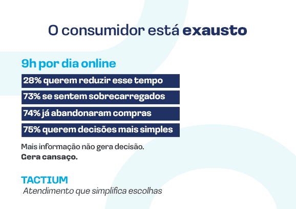 Dados mostram que 73% dos consumidores se sentem sobrecarregados pela quantidade de opções disponíveis, enquanto 74% já abandonaram compras por esse motivo.
